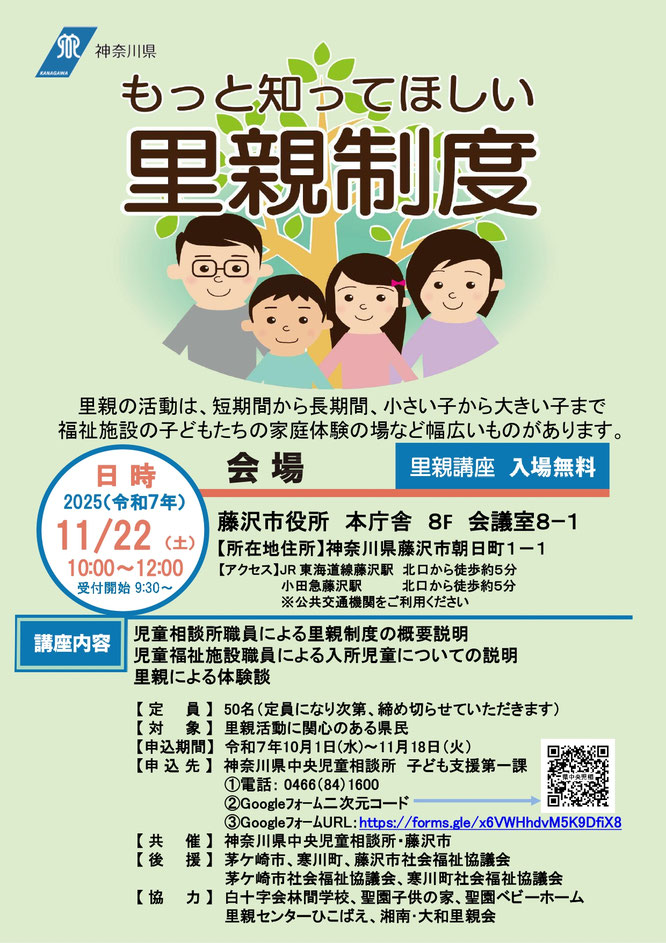 「里親制度」をより多くの方に知っていただくために、里親センターひこばえと大和綾瀬地域児童相談所、地域児童福祉施設の家庭養育支援センター、里親支援専門相談員とともに普及啓発活動を行っています。